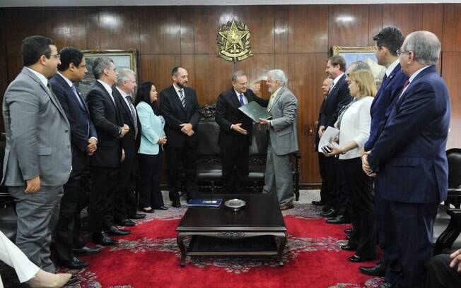 Ministro-chefe da Casa Civil, Jaques Wagner, entrega documento a Renan Calheiros, nesta quarta