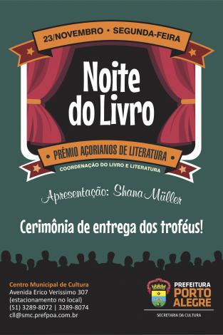 O Teatro Renascença, no Centro Municipal de Cultura, abre as suas portas nesta segunda-feira, 23, a partir das 20h, para mais uma edição da Noite do Livro, cerimônia de entrega dos troféus do 22º Prêmio Açorianos de Literatura e do 6º Prêmio Açorianos de Criação Literária, que em 2015 tem como foco o gênero Romance Juvenil.