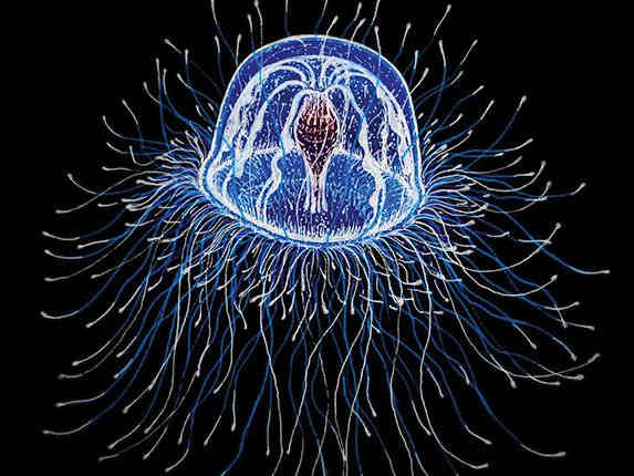 Das ist richtig Turritopsis nutricula ist eine Quallen, die sich verjüngen können. In jedem Augenblick kann es den Alterungsprozess umkehren, der aus dem Tod entkommt (es sei denn, er leidet einen tödlichen Schlag)